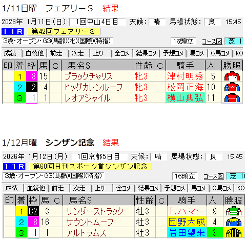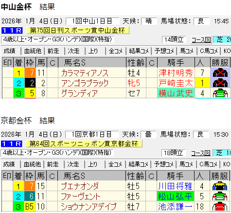 第一週の中山金杯、第2週のシンザン記念は