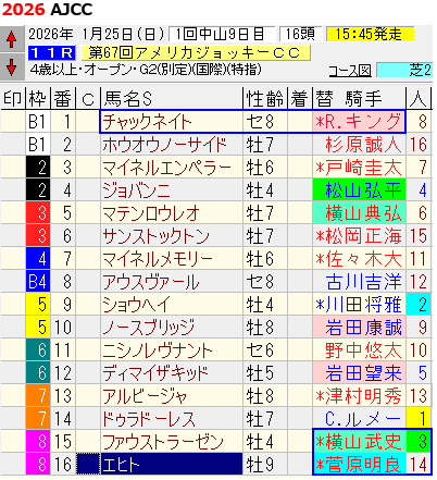 去年のAJCCでその結果はこれ