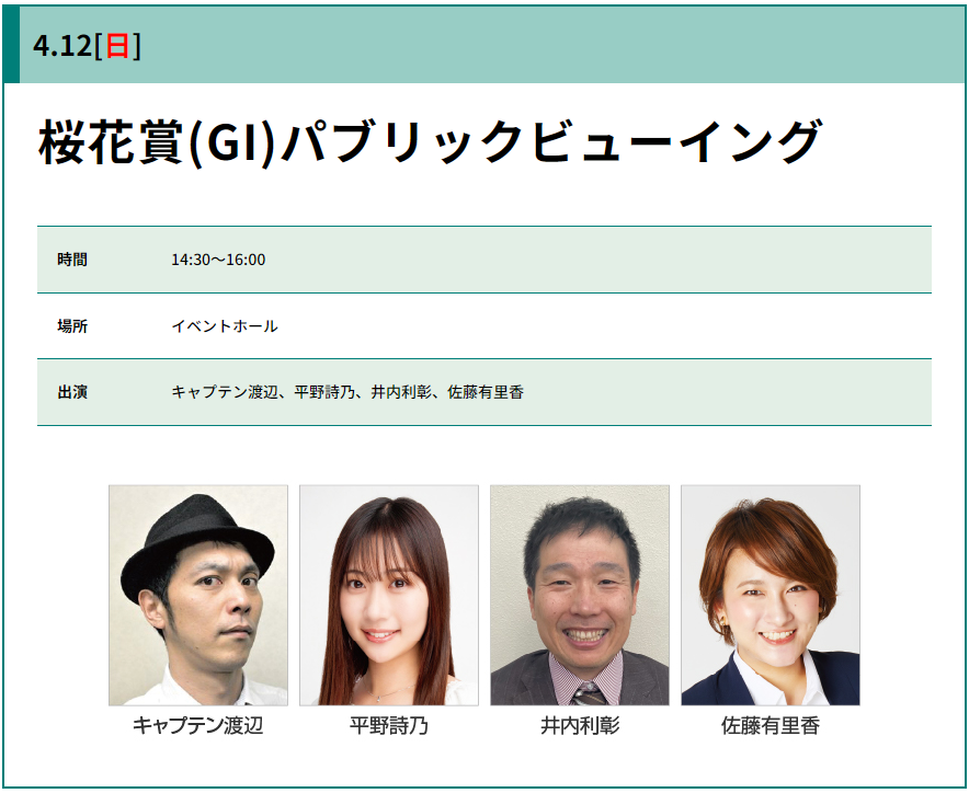 で、中山競馬場の当日イベントを見てみると