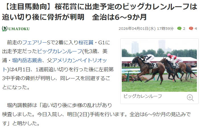 確か、故障前はフェアリーSで2着でしたよね