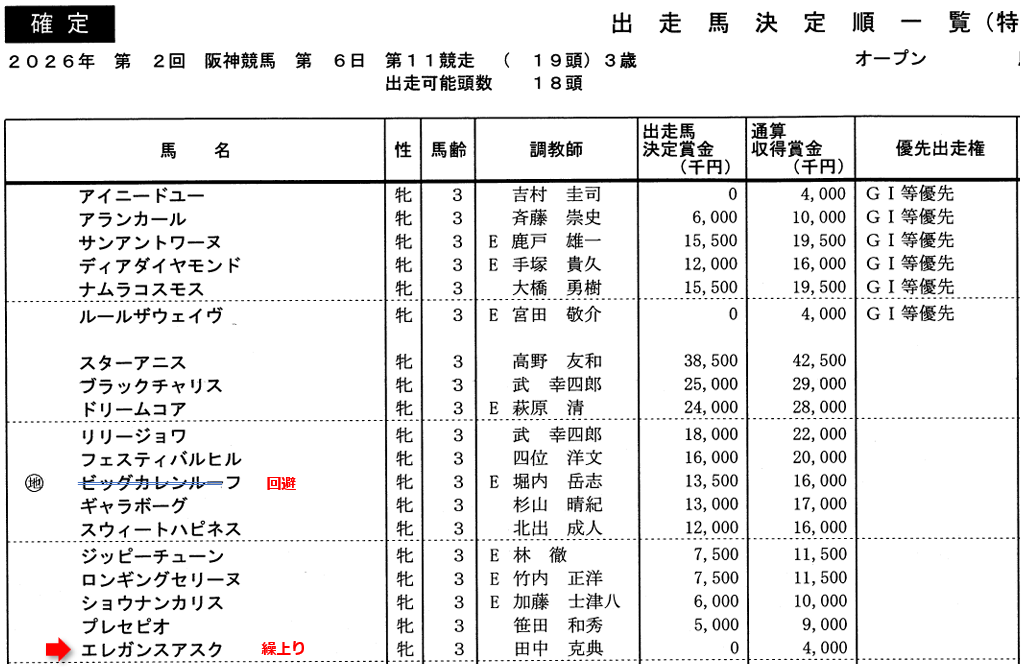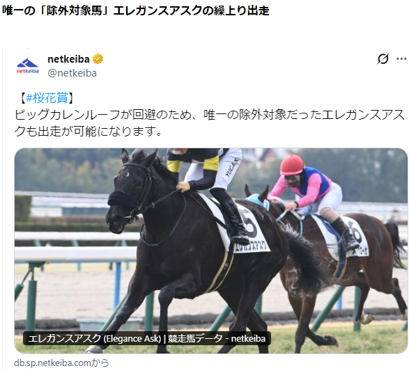 で、繰上りの「エレガンスアスク」は