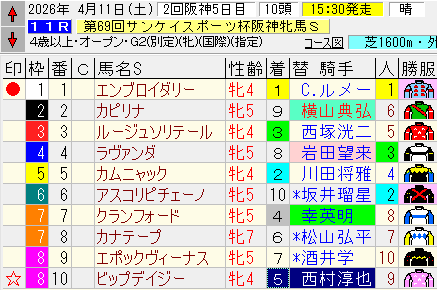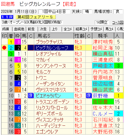 このレースの【緑枠】の11番に